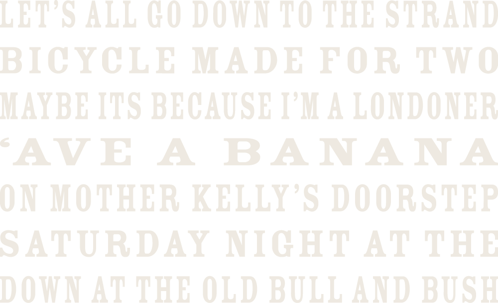 Made popular in the early Victorian period, Music Hall involved true entertainment with popular songs, comedy, speciality acts and variety shows. In 1878, London proudly hosted 78 large music halls in the metropolis and 300 smaller venues. So, jump onto your Bicycle Made for Two and Let’s All Go Down The Strand to the Old Bull & Bush for a fun, nostalgic show that will have audiences singing along.